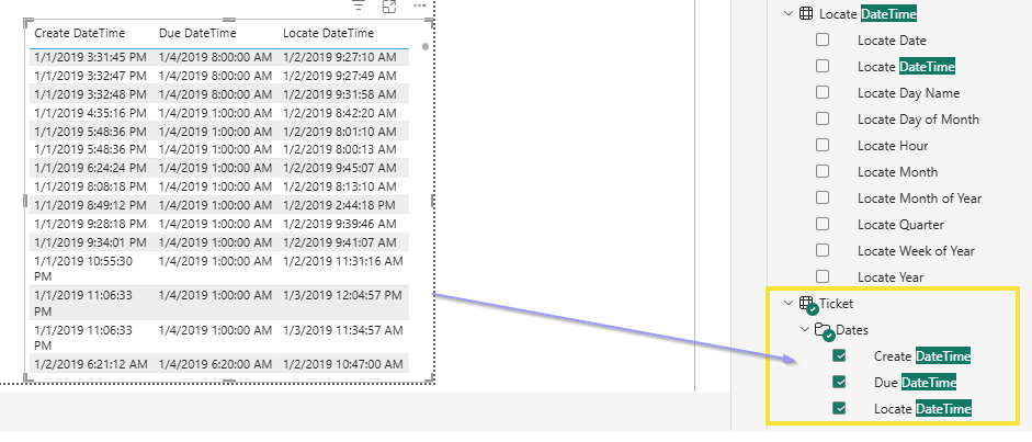 It seems that the filters available or the data that is being pulled in Power BI around ticket response time is rounding the time rather than giving the accurate time of the response. We use ticket due time and response time as one of our key metrics for workload and overall health of the operations in the area. Having some more granularity when it comes to the accurate response time on tickets and adding some functionality around the time remaining on the ticket when you compare the due time to the response time would greatly improve our current process of pulling that data. Attached is an example of the "Locate DateTime" in Power BI compared to the response time in the tickets.